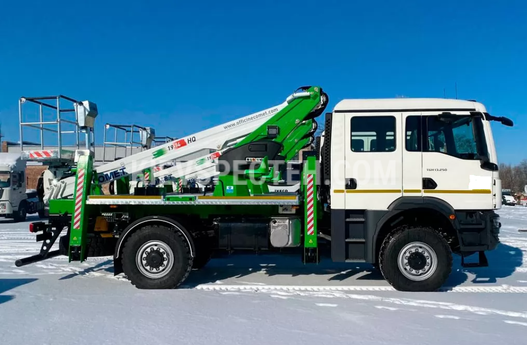 Автогідропідіймач COMET 19 на базі шасі MAN TGM 13.250 4x4 — це потужне та надійне рішення для висотних робіт у найскладніших дорожніх умовах. Завдяки поєднанню італійської інженерії підйомних механізмів та німецької витривалості вантажівки, ця спецтехніка ідеально підходить для обслуговування електромереж, ліній зв'язку та об'єктів інфраструктури у важкодоступній місцевості.