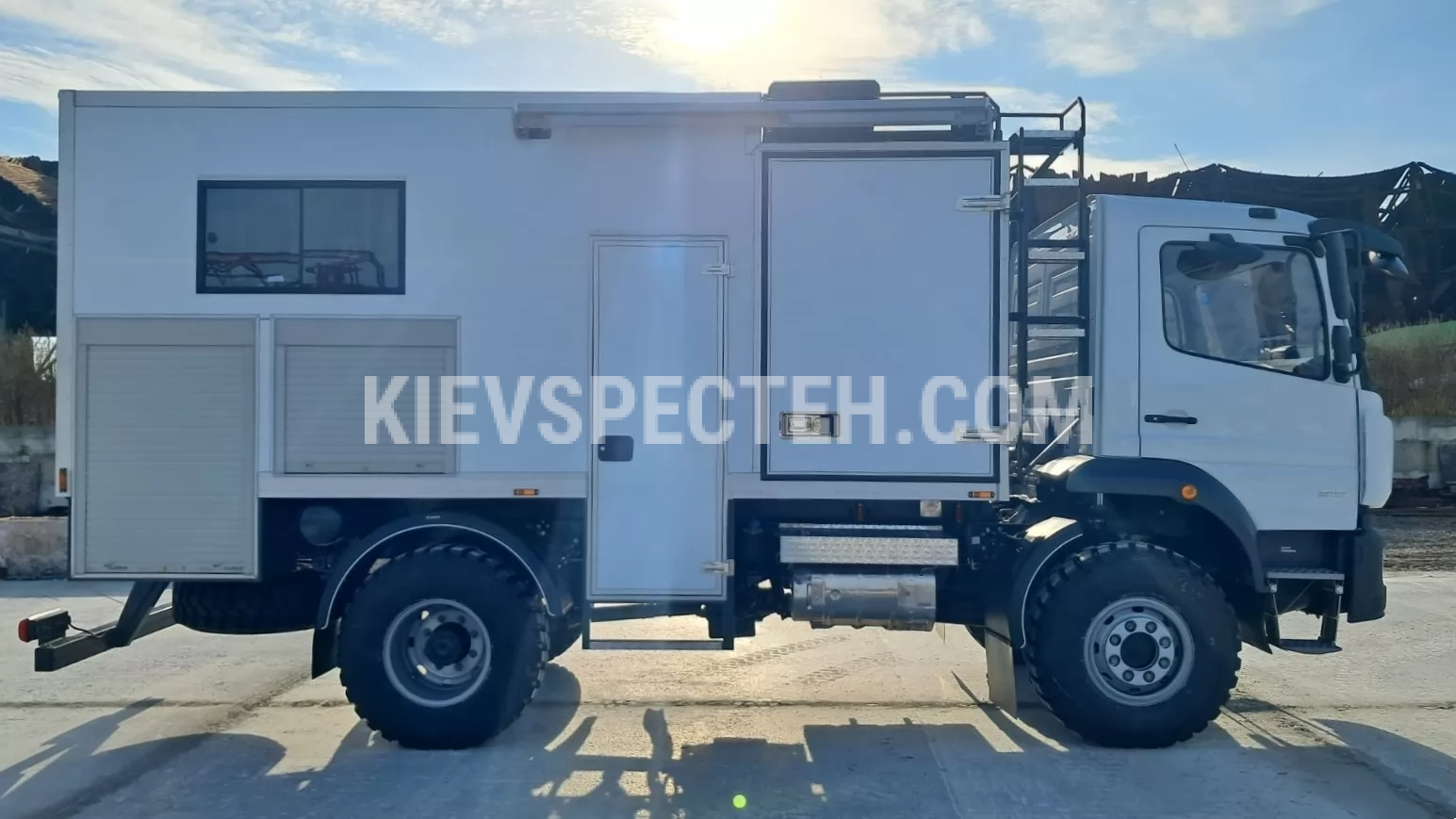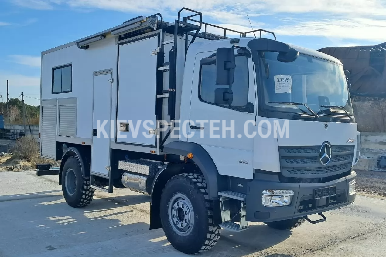 Мобільна шиномонтажна майстерня на базі MERCEDES-Benz Atego призначений для виконання оперативних шиномонтажних та ремонтних робіт у польових умовах за відсутності стаціонарної сервісної інфраструктури. Майстерня забезпечує автономне виконання робіт з обслуговування легкового та вантажного автотранспорту, включаючи ремонт і заміну коліс.