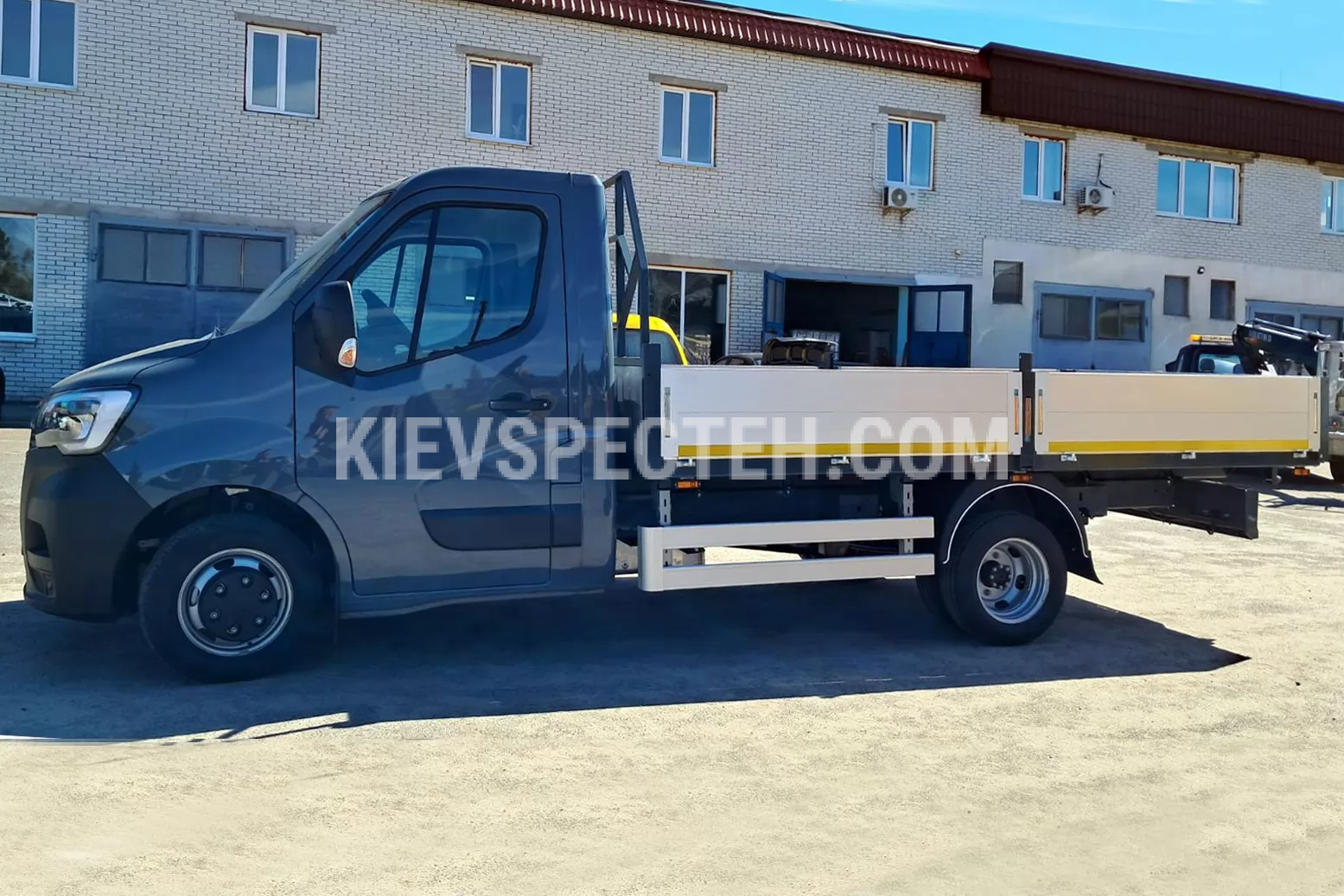 Бортовий автомобіль на шасі RENAULT MASTER — універсальне рішення для щоденної роботи у місті та на міжміських маршрутах, де важливі маневреність, компактність і практична вантажопідйомність, колісна формула 4х2. Габаритні розміри шасі (ДхШхВ) 6800х2200х2500 мм, колісна база 4330 мм. абарити платформи (Д×Ш) 3900×2200 мм вистоа 400 мм. Об’єм кузова 4 м³, вантажопідйомність 4500 кг.