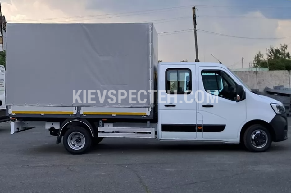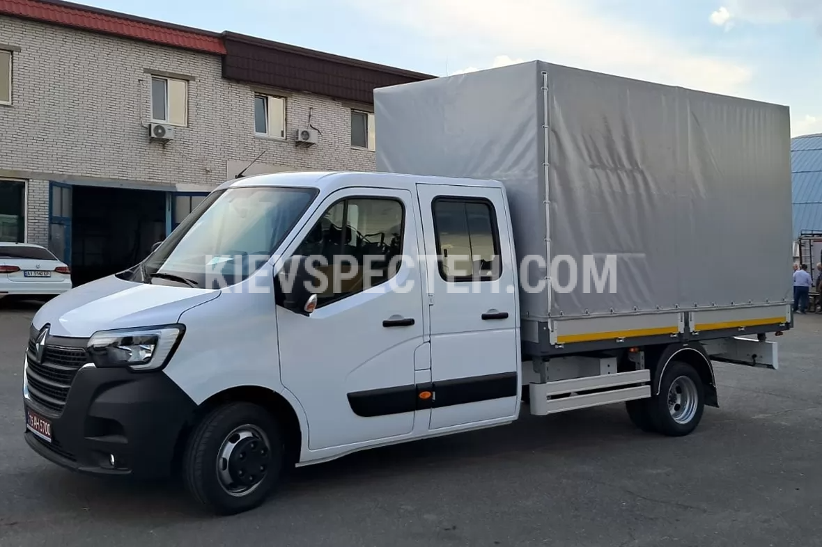 Бортовий автомобіль з тентованою платформою на базі RENAULT MASTER призначений для перевезення різноманітних вантажів у міських та міжміських умовах експлуатації. Габаритні розміри шасі (ДхШхВ) 6315х2080х2500 мм. колісна база 3682 мм. а габаритні розміри борту (ДхШхВ) 3200х2100х2200 мм, де висота борту 400 мм. Колісна формула 4х2, онсщений дизельним двигуном моделі 2.3 dCi потужністю до 170 к.с. Об’єм кузова 12 м³, вантажопідйомність до 10000 кг.