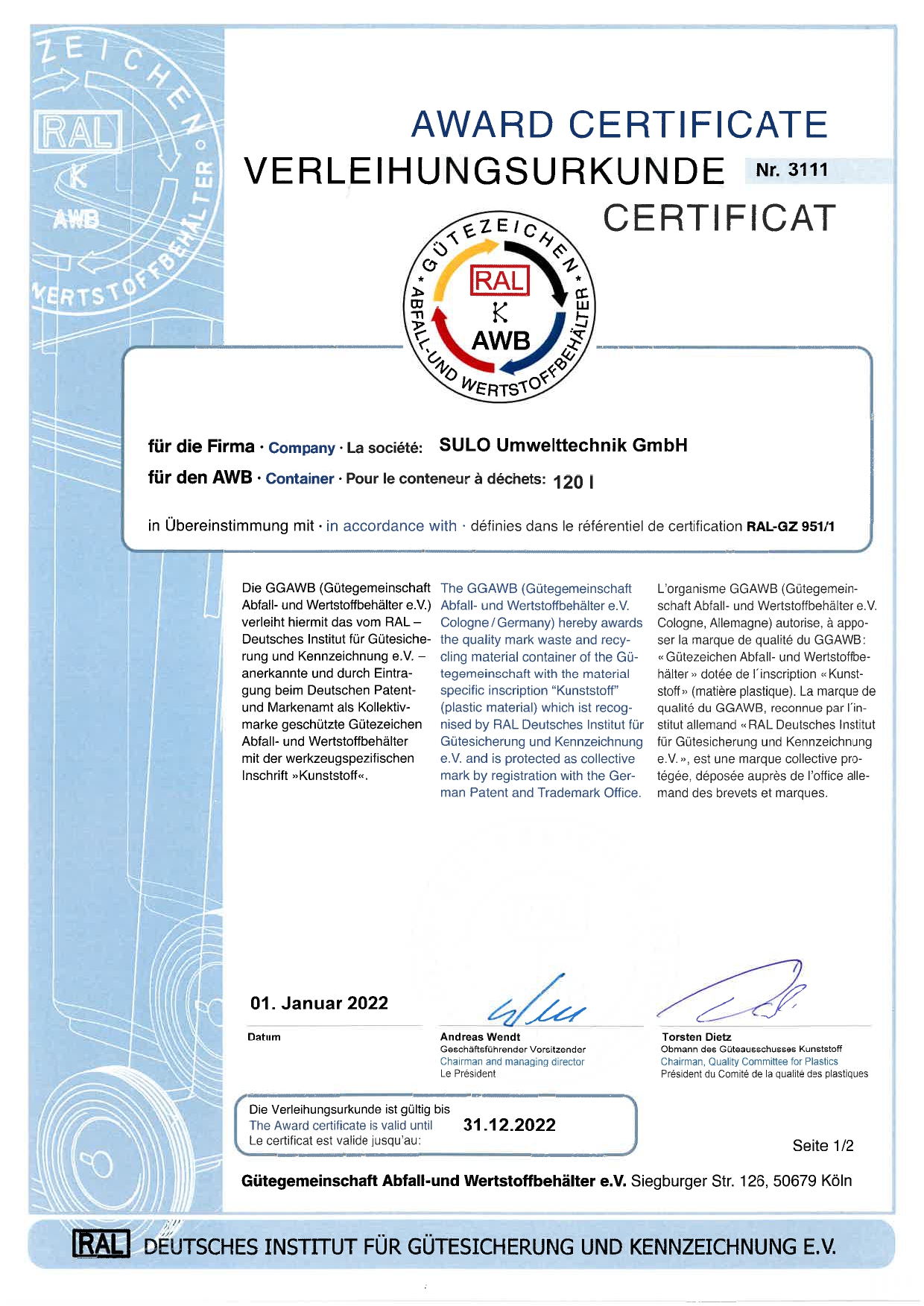 SULO підтверджує якість своєї продукції гарантією 12 місяців і багаторічним досвідом використання контейнерів у країнах ЄС та України.