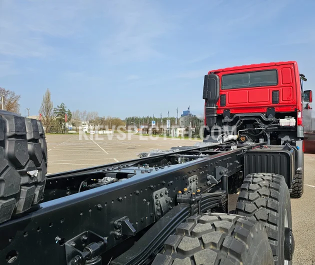 Паливний бак об’ємом 400 л дозволяє працювати тривалий час у віддалених районах без необхідності частого дозаправлення. Конструкція шасі з подвійною посиленою рамою забезпечує високу жорсткість і стійкість до кручення, що робить його ідеальною платформою для встановлення важких надбудов, включаючи крано-маніпуляторні установки, бурові комплекси, автоцистерни або спеціалізовані ремонтні модулі.