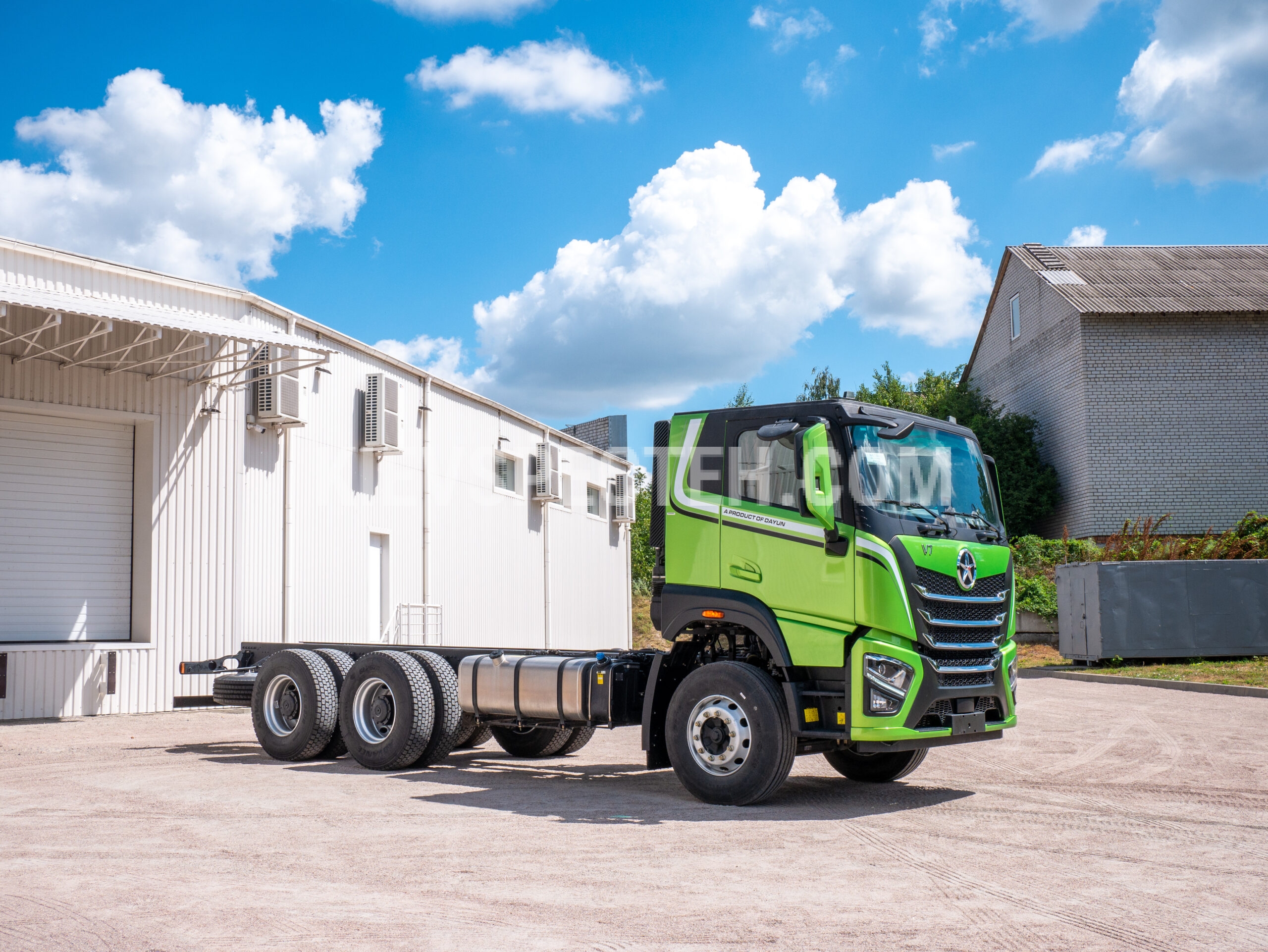 Шасі DAYUN CGC1331 — важке вантажне шасі з колісною формулою 6×4 та повною масою 33 000 кг, розроблене для експлуатації з важкими надбудовами та у складних умовах. Габаритні розміри шасі (ДхШхВ) 8485×2550×3145 мм, колісна база 3800 мм. Вантажопідйомність становить понад 24600 кг. Оснащений дизельним двигуном моделі Weichai WP8.340E51 потужністю 250 кВт (340 к.с.) кабіна двухрядна.