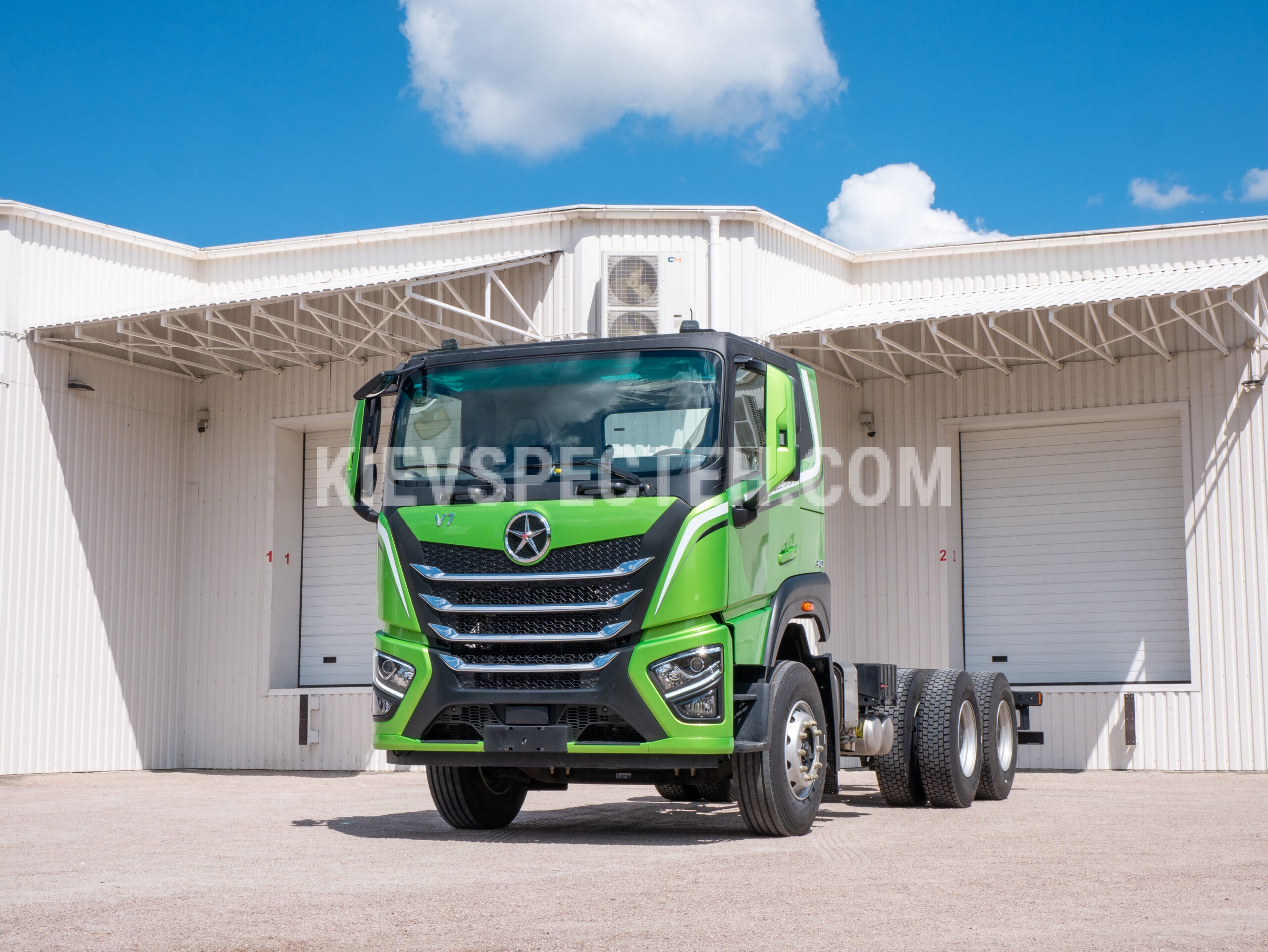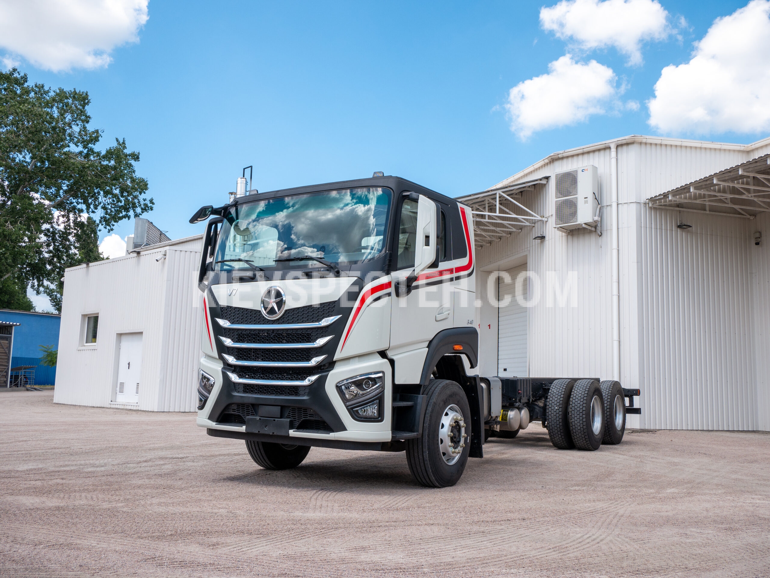Габаритні розміри автомобіля становлять 8485 × 2550 × 3145 мм (Д×Ш×В). Ширина 2550 мм відповідає стандартам важкого вантажного транспорту та дозволяє встановлення широких надбудов. Висота 3145 мм враховує високу кабіну зі спальним місцем і не обмежує монтаж спеціального обладнання. Довжина 8485 мм у поєднанні з монтажною довжиною рами 6288 мм (7188 мм) забезпечує можливість встановлення довгих і масивних надбудов.