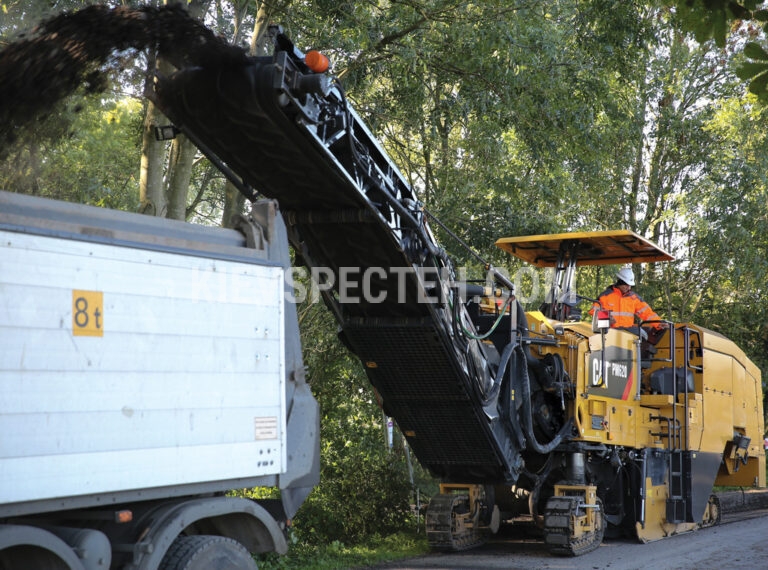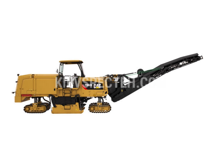 Експлуатаційні габарити машини з піднятим конвеєром становлять 14 520 × 2 790 × 5 370 мм (Д×Ш×В). У транспортному положенні CAT PM620 має довжину 12 430 мм, ширину 2 500 мм та висоту 3 000 мм, що спрощує міжоб’єктну логістику. Поворотний конвеєр з кутом відхилення ±60° забезпечує зручне відвантаження фрезерованого матеріалу в самоскиди з різних положень.