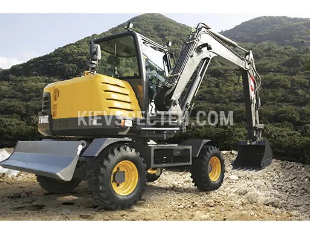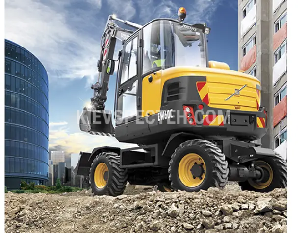Екскаватор колісний Volvo EW60C належить до категорії компактних колісних машин, які поєднують мобільність, високу продуктивність і універсальність у виконанні землерийних та навантажувальних робіт. Глибина копання становить 3,32 м., а його потужність двигуна 63 к.с.