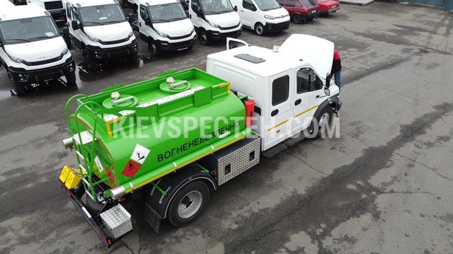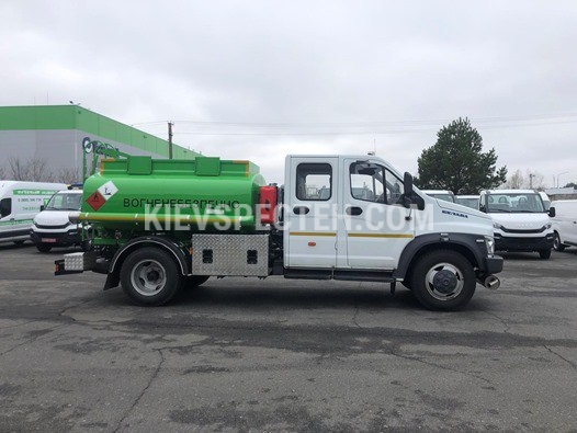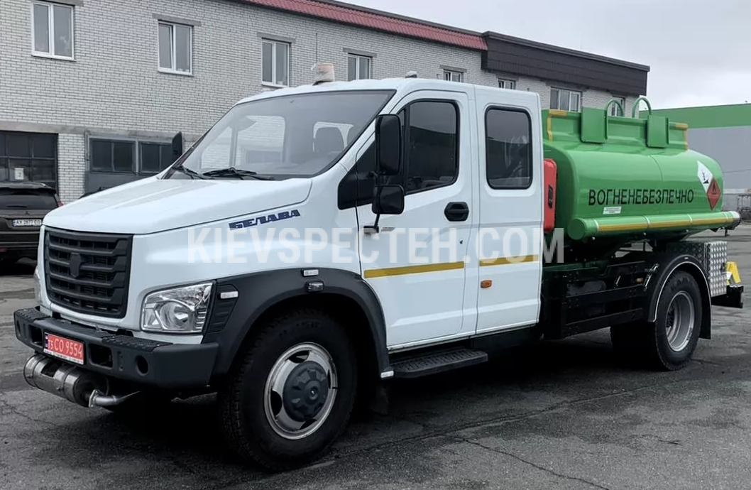 Автопаливозаправник 4 м3 на шасі ГАЗОН НЕКСТ 4х2 представлений компанією Київспецтех, має об'єм 4 кубічних метрів з двома вузлами видачі палива, що дозволяє одночасно заправляти два автомобілі. Вузли видачі палива розташовані окремо, безпосередньо під секцією цистерни, що забезпечує зручність та ефективність.