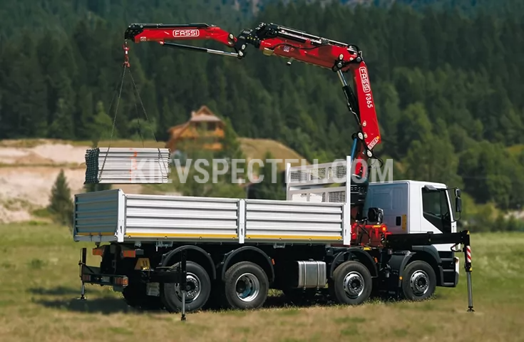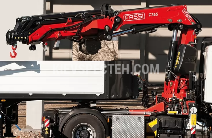 Кран-маніпулятор FASSI F365A e-dynamic належить до середньої серії Medium Duty італійського виробника Fassi та розрахований на виконання складних вантажно-розвантажувальних і монтажних робіт із важкими вантажами. Вантажопідйомність становить понад 34 т. а його максимальна довжина стріли 21 м. Кут повороту 400°, телескопічна стріла.