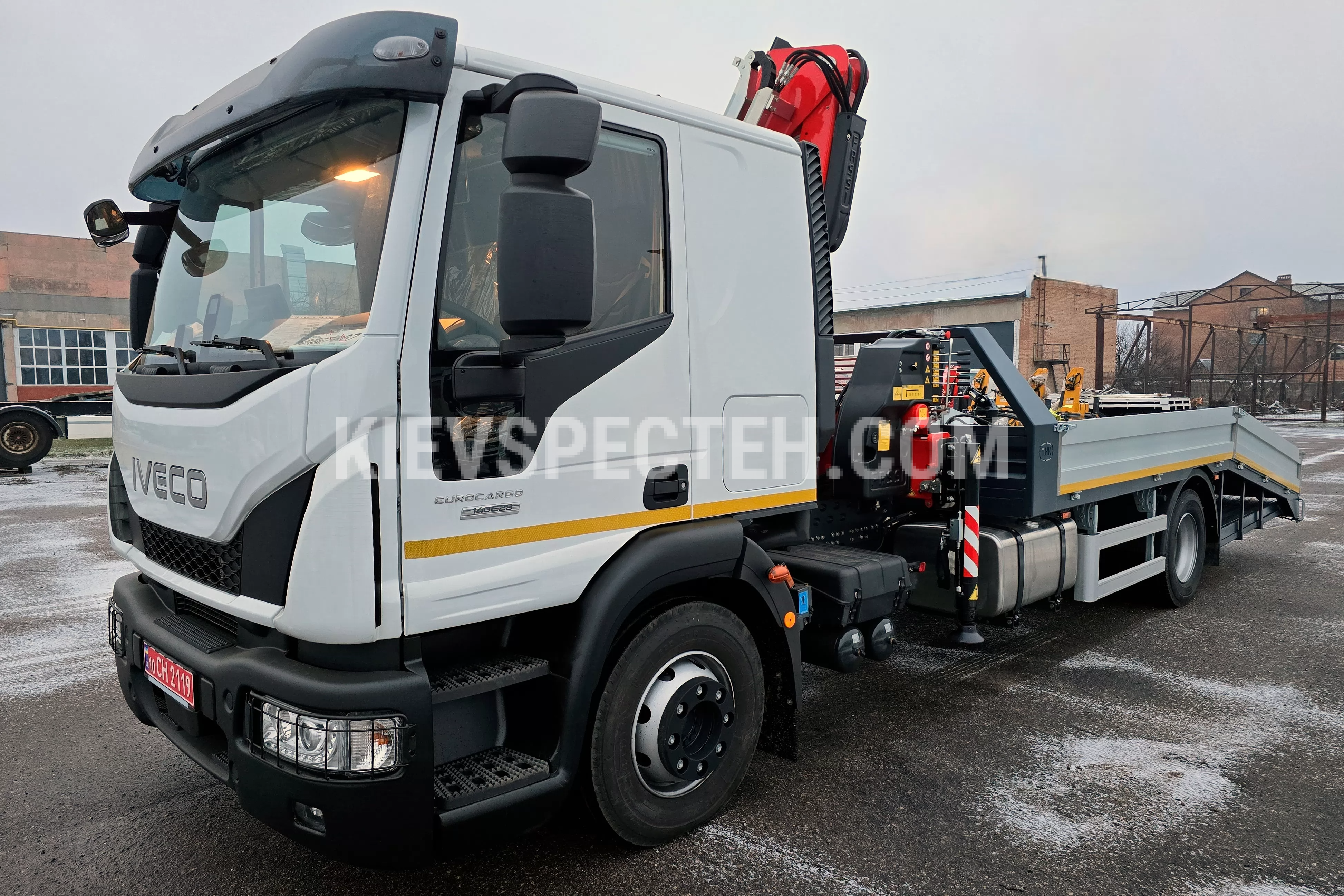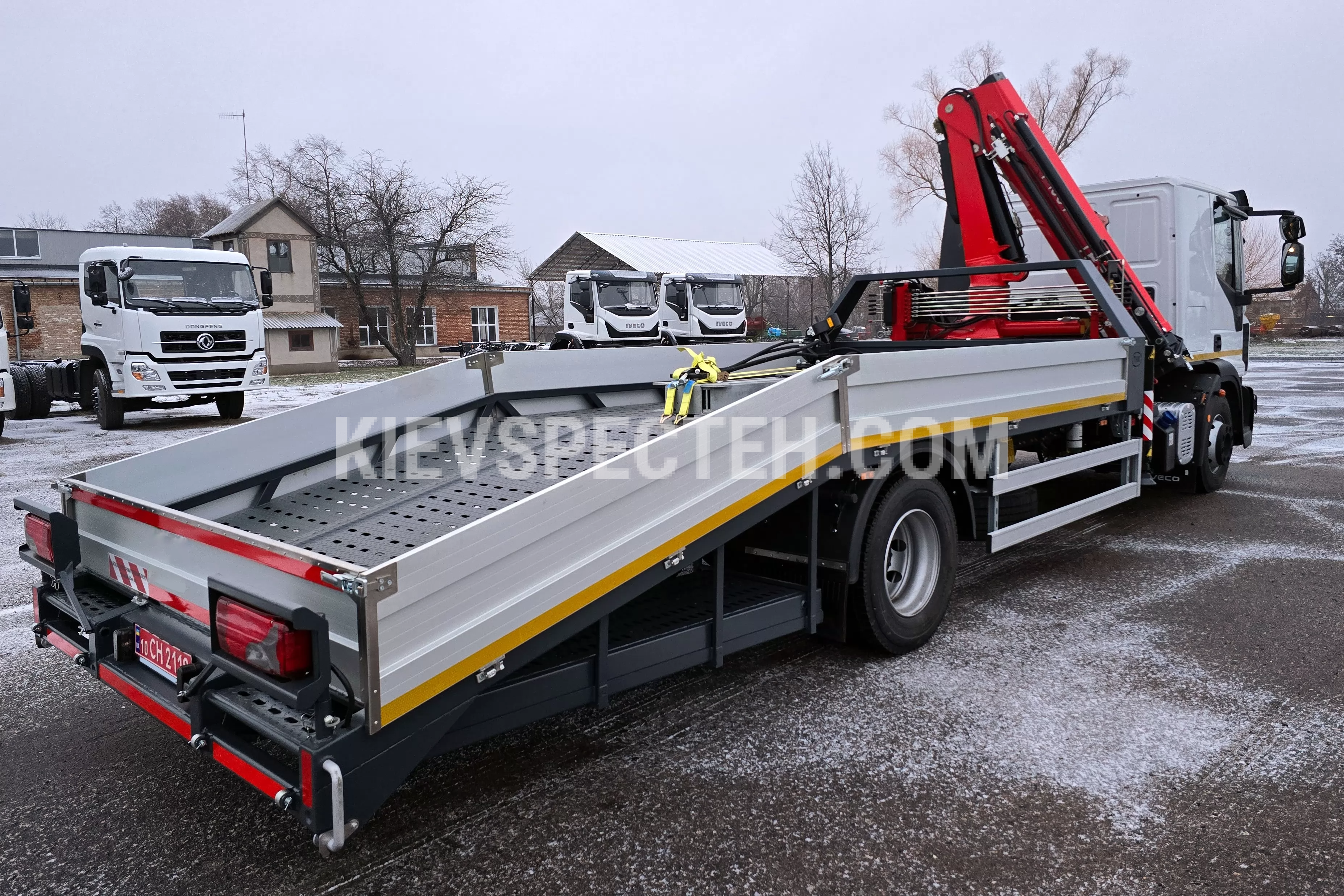 Бортова вантажівка-евакуатор IVECO Eurocargo ML140E28 з КМУ FASSI F130AT призначений для навантаження, зняття та транспортування різних видів автотехніки масою до 5,5 т, а також для виконання вантажно-розвантажувальних робіт у міських і позаміських умовах. Габаритні розміри (ДхШхВ) 8647×2350×2700 мм. Колісна формула 4х2, колісна база 5175 мм. оснащений дизельним двигуном TECTOR (F4AFE611) потужністю 207 кВт / 280 к.с. КМУ FASSI F130AT, вантажопідйомність 12,7 тм. максимальна довжина стріли 10 м.