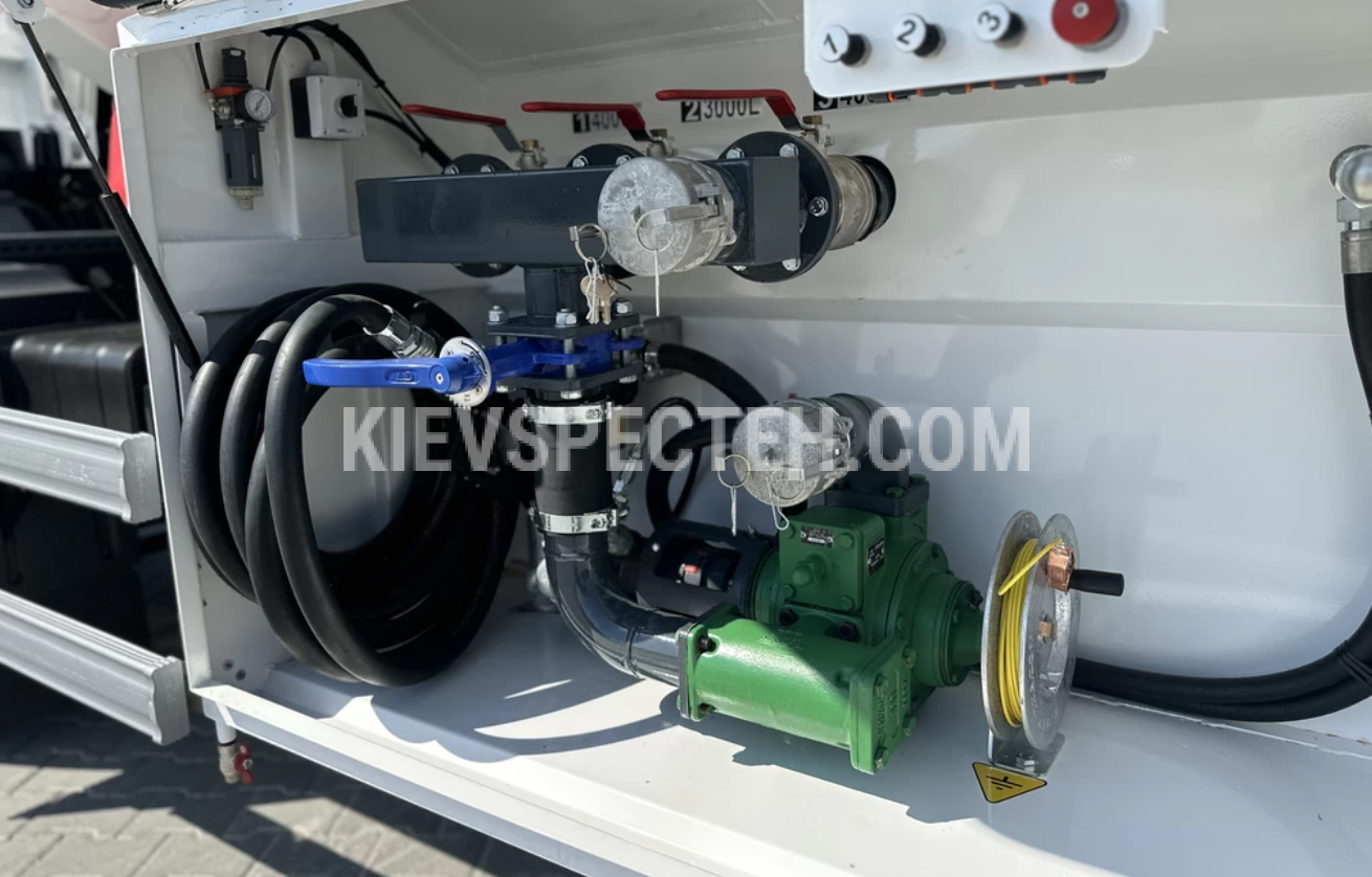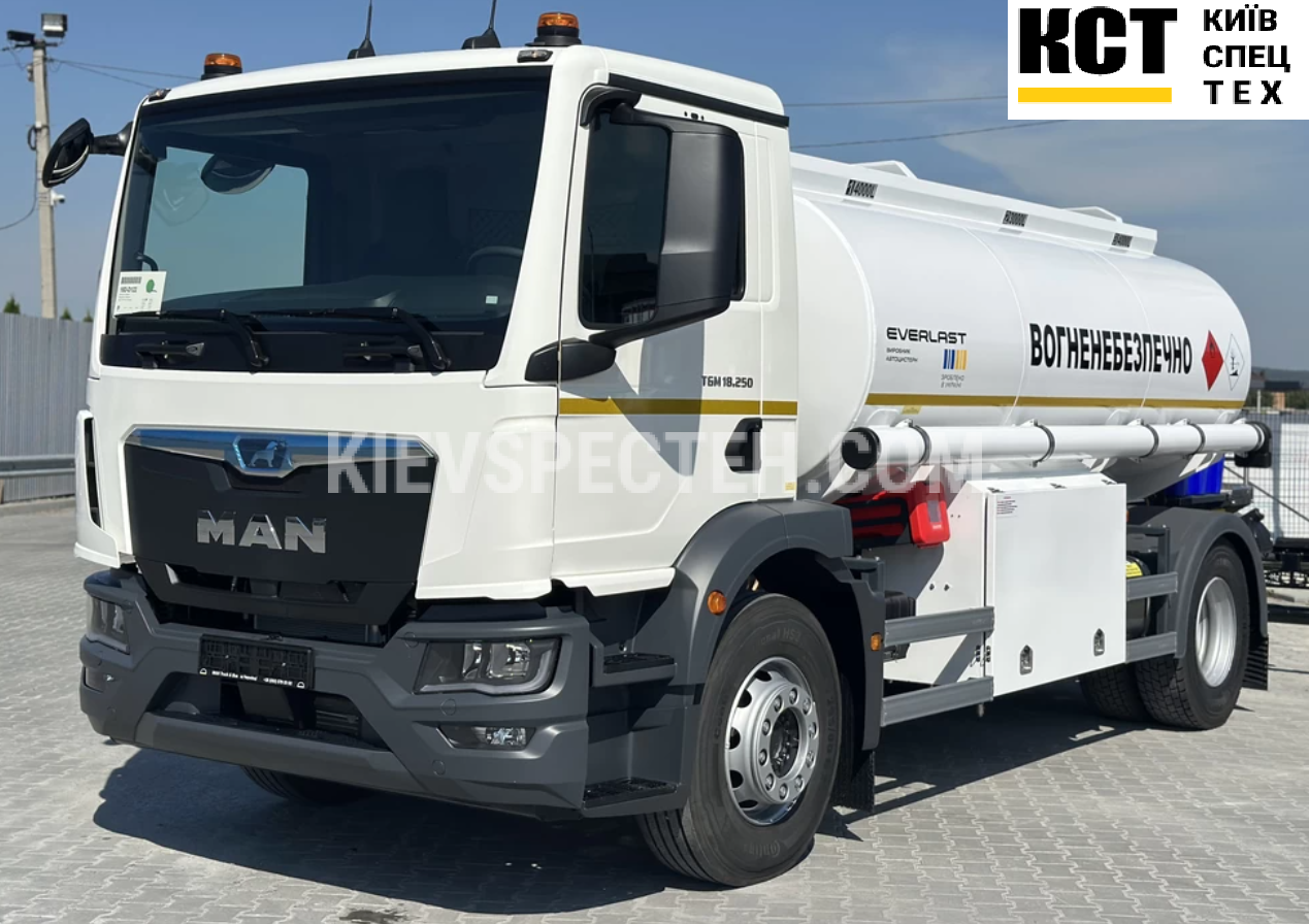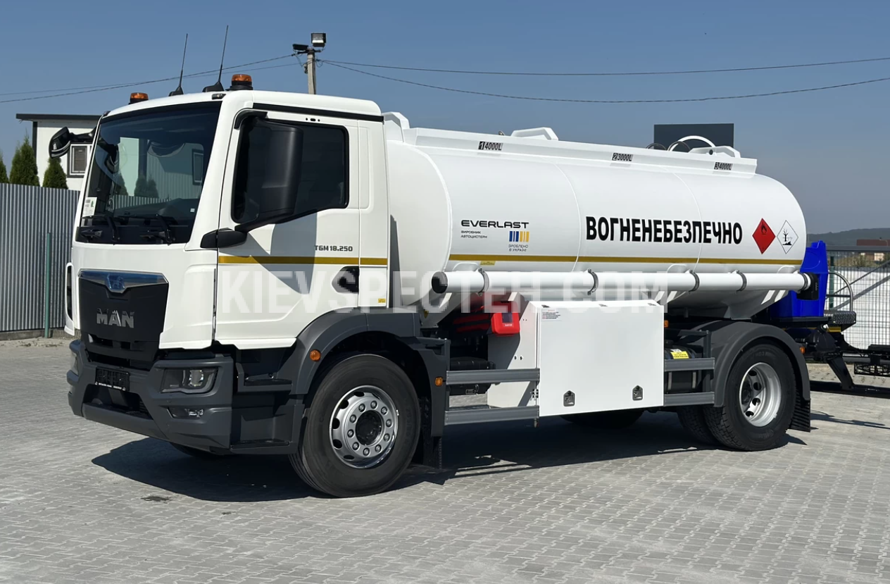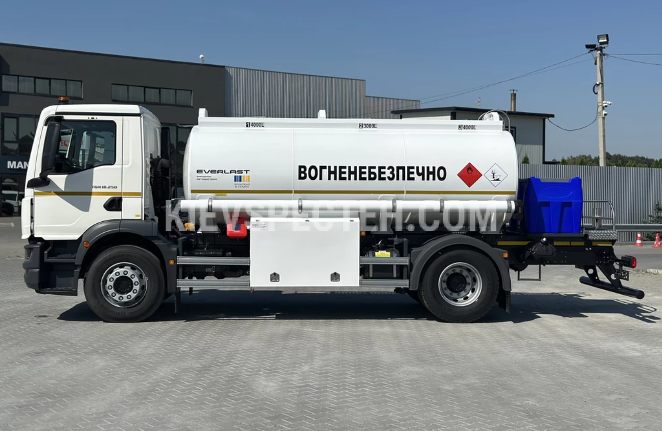 Автопаливозаправник 10 м3 на шасі MAN TGM 18.250 4x2 BL представлений компанією Київспецтех, має об'єм 10 кубічних метрів з трьома вузлами видачі палива, що дозволяє одночасно заправляти три автомобілі. Вузли видачі палива розташовані окремо, безпосередньо під секцією цистерни, що забезпечує зручність та ефективність.