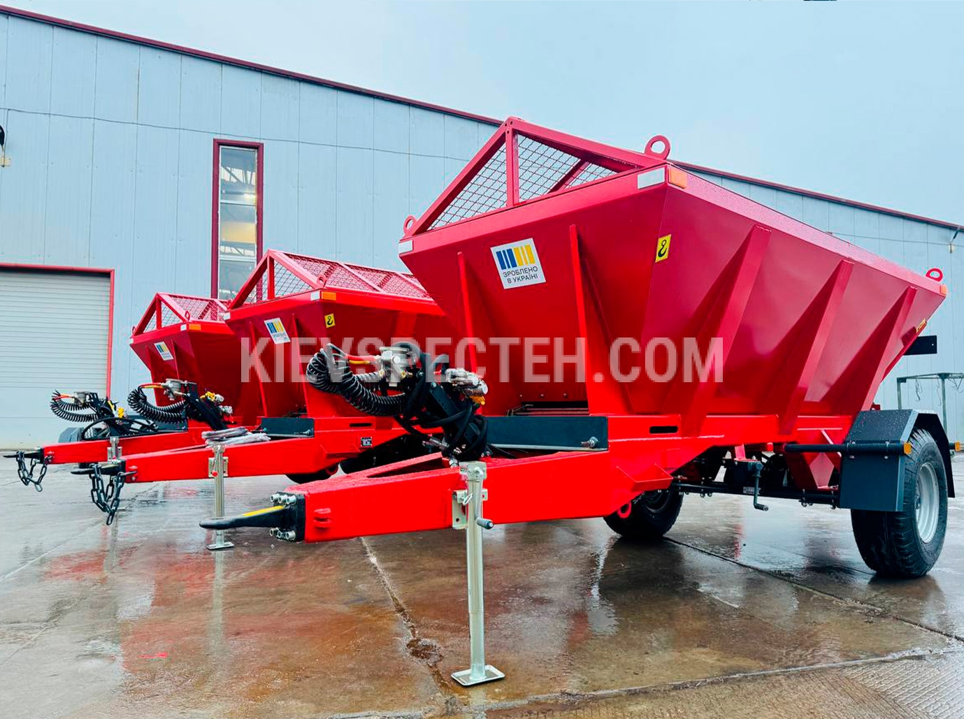 Піскорозкидач RP-3 — це надійна машина для зимового обслуговування доріг, тротуарів та інших поверхонь. Вона призначена для рівномірного розкидання піску, солі або гравію. Приводиться в дію трактором потужністю 60 к.с. і більше та має гідравлічний привід для всіх механізмів. Міцний сталевий корпус об'ємом 3 м³ і вантажопідйомністю до 4500 кг оснащений захисною решіткою для безпечного завантаження матеріалу з висоти 1,8–2,2 м.