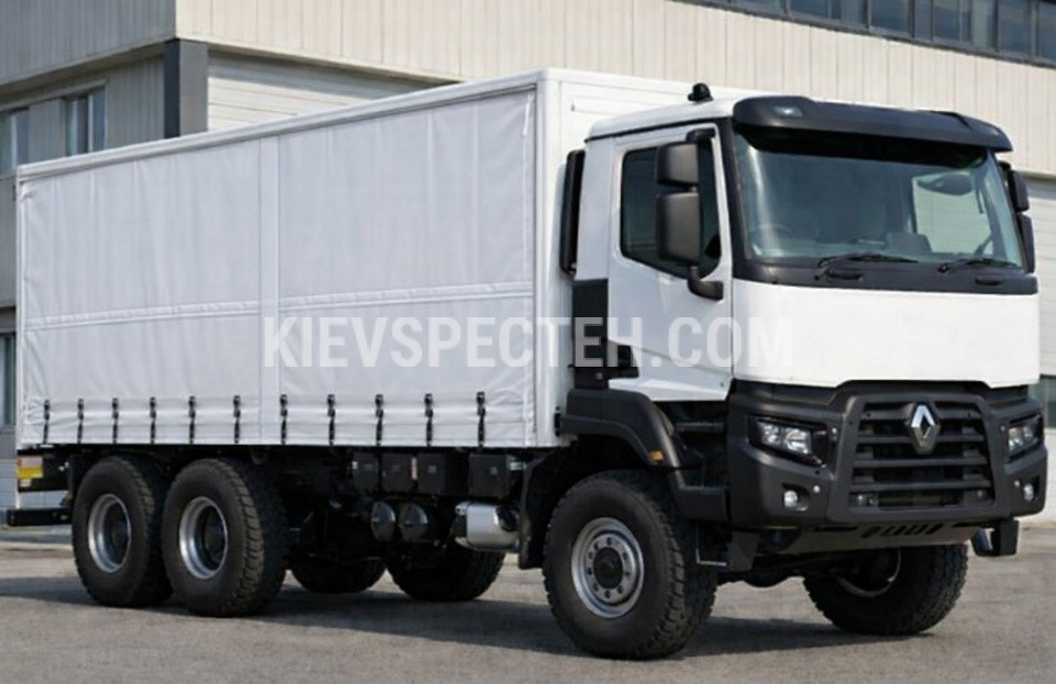 Бортовой тентованный автомобиль Renault K13 с колесной формулой 6х6 оснащен дизельным двигателем DXi 13 мощностью 449 л.с. Колесная база составляет 4300 + 1370 мм. Габаритные размеры (ДхШхВ) 9738х2448х3429 мм. Максимальный объем перевозимого груза 46 м3.