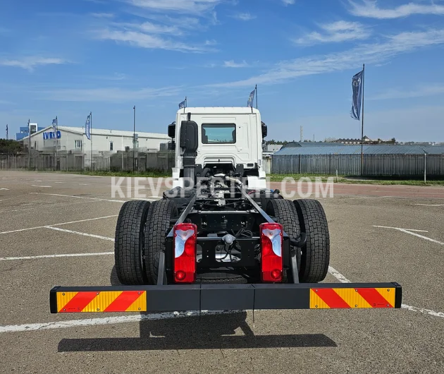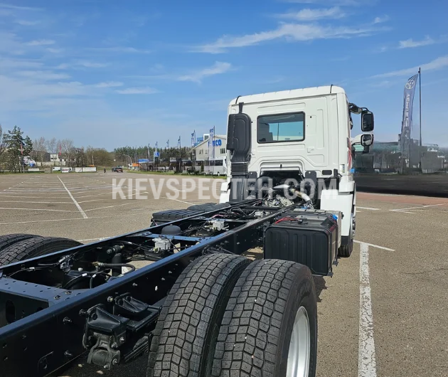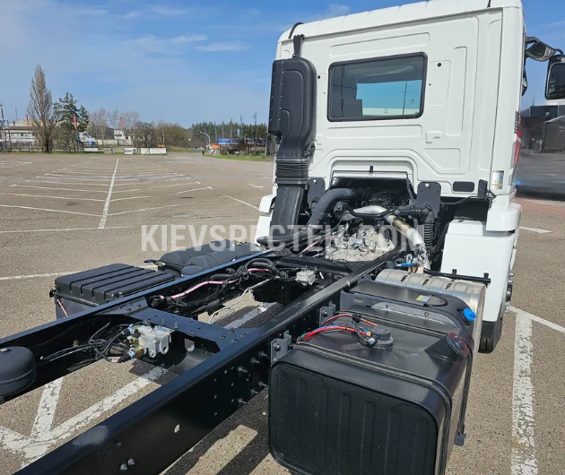 Топливная система представлена баком объемом 200 литров со стальным или опционным алюминиевым исполнением, расположенным на раме с правой стороны. Колесная база и шины R22,5 обеспечивают стабильность движения и равномерное распределение нагрузки.