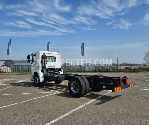 Шасси рассчитано на полную массу 18 000 кг и обеспечивает грузоподъемность до 12 630 кг, что позволяет работать с тяжелыми и объемными грузами без потери стабильности. Конструкция базируется на усиленной стальной раме, выдерживающей значительные динамические нагрузки, а также обеспечивающей долговечность при ежедневной эксплуатации. Колесная формула 4х2 в сочетании с оптимальной базой 4430 мм формирует баланс между устойчивостью на трассе и возможностью установки длинных кузовов объемом до 40 м³.