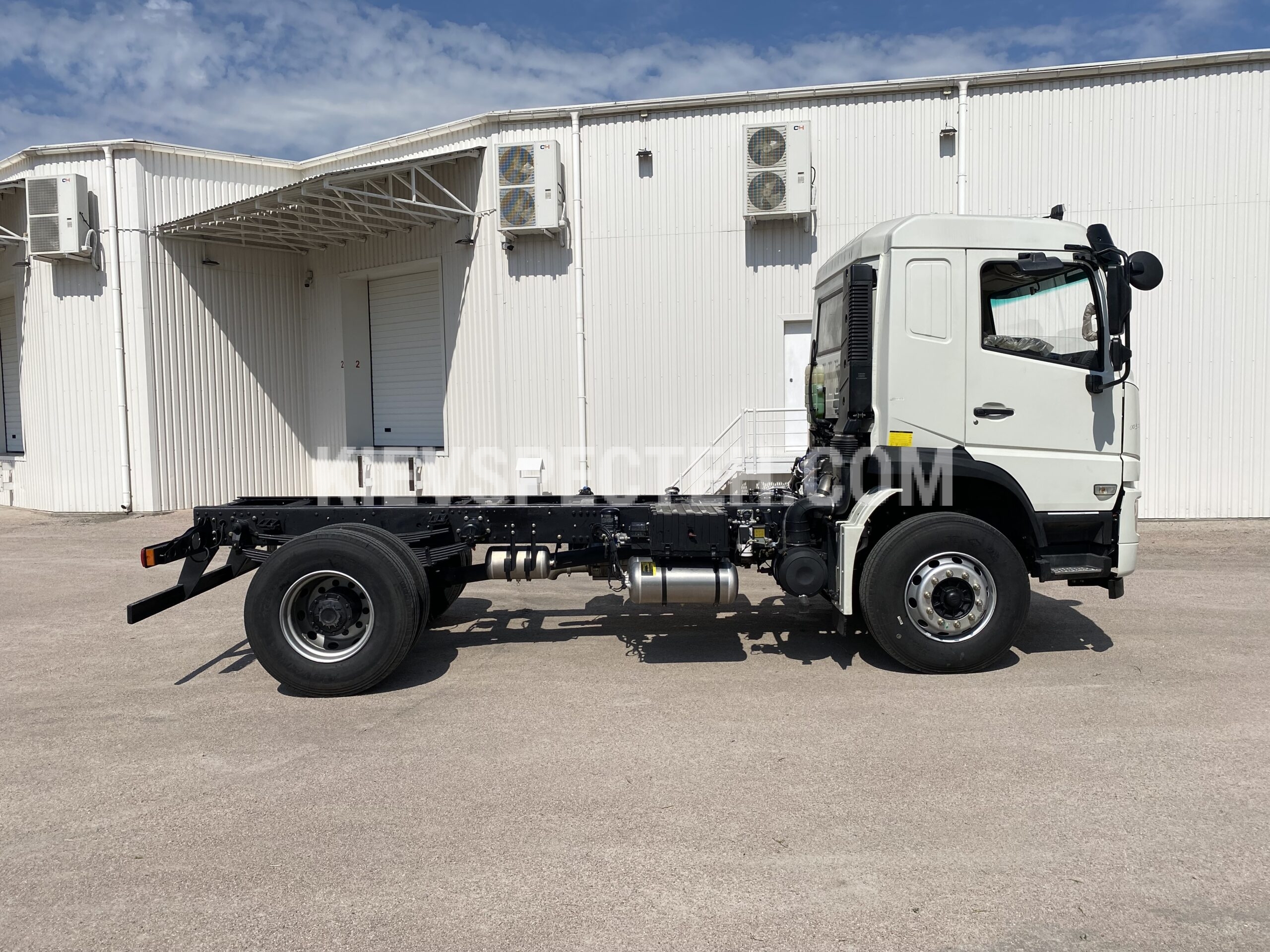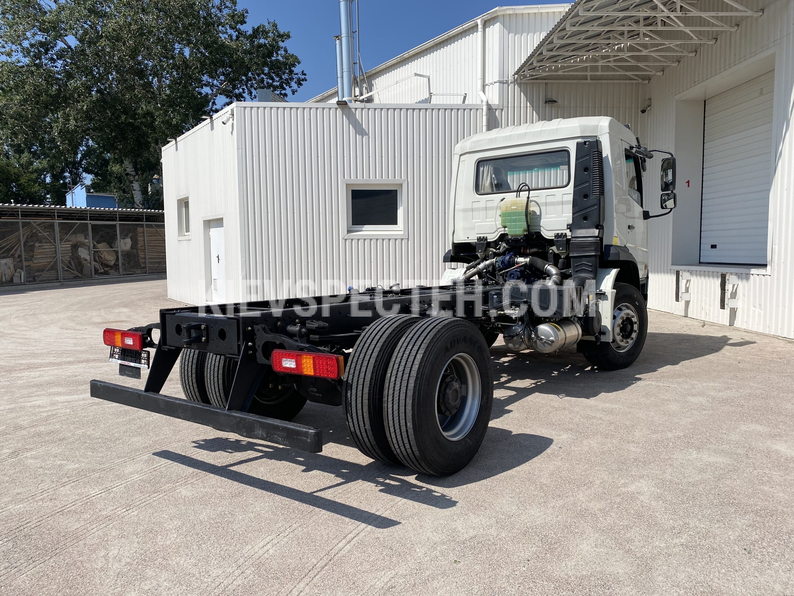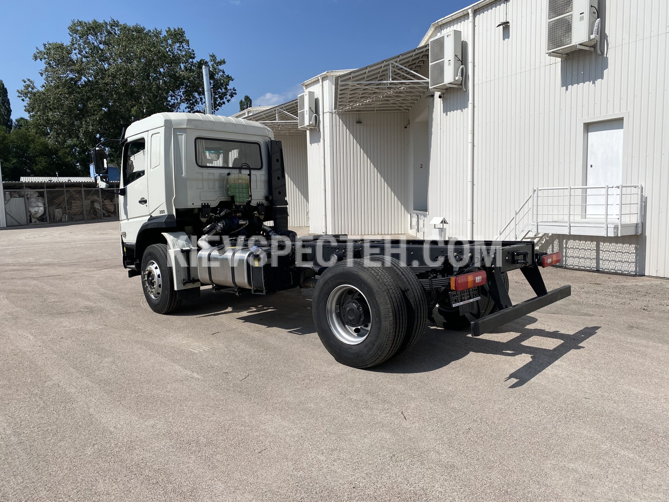 Топливный бак объемом 300 л, выполненный из алюминия, обеспечивает значительный запас хода и уменьшает собственную массу шасси. Шасси комплектуется шинами 315/80R22,5, рассчитанными на высокие осевые погрузки и эксплуатацию в сегменте тяжелых грузовых автомобилей.