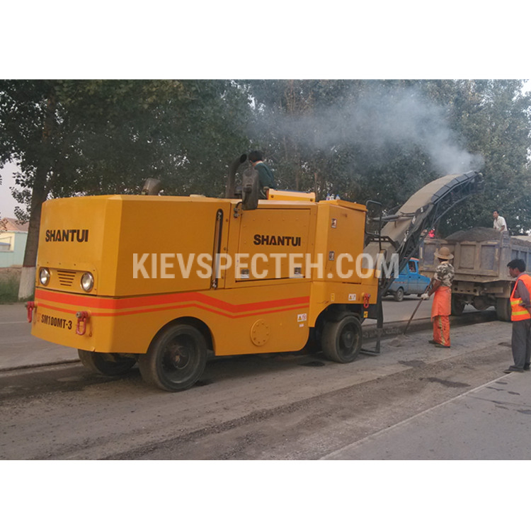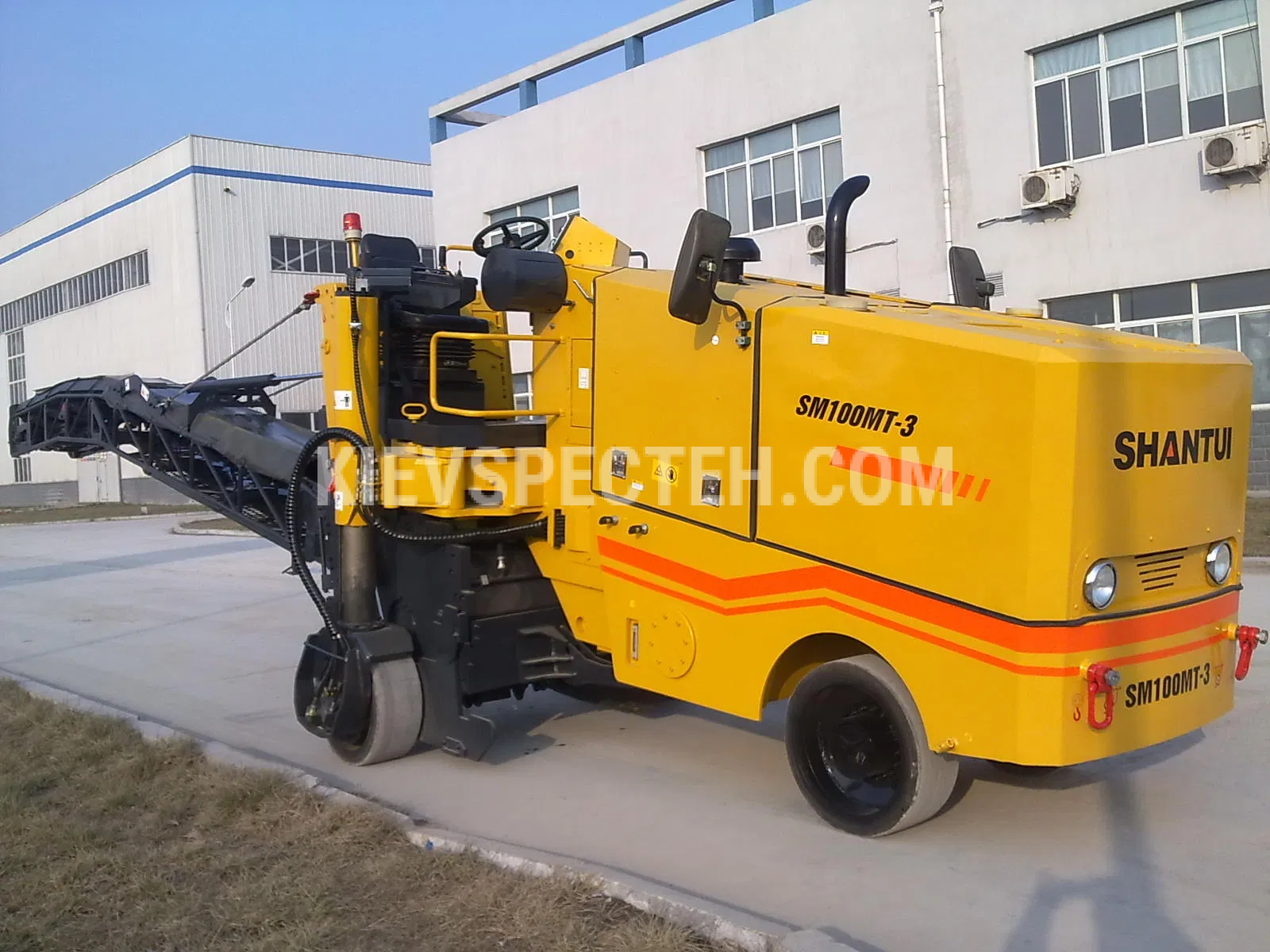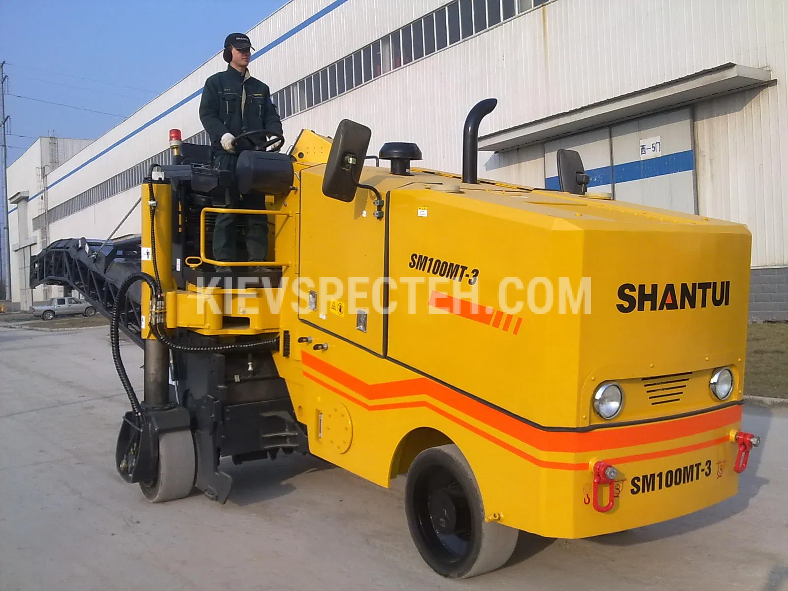 Дорожная фреза Shantui SM100MT-3 — самоходная фрезерная машина среднего класса, предназначенная для холодного фрезерования асфальтобетонных покрытий при ремонте и реконструкции автомобильных дорог, городских улиц и промышленных площадок. Габаритные размеры (Д×Ш×В) 12210×2385×2545 мм, тип колесный, глубина фрезерования 300 мм, ширина 1000 мм. Снаряженная масса составляет более 14,5 т. Мощность двигателя 160 кВт. 220 л.с.
