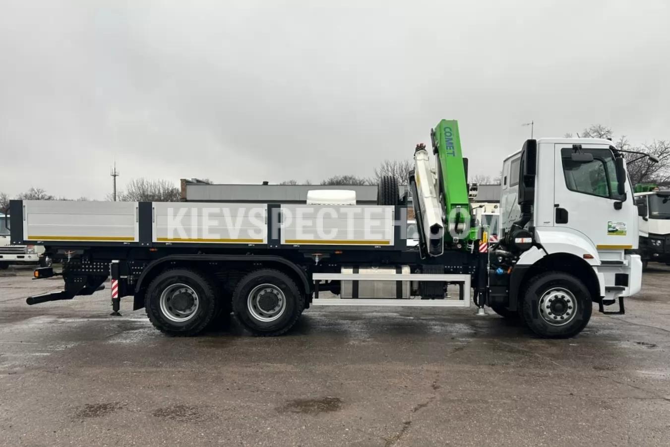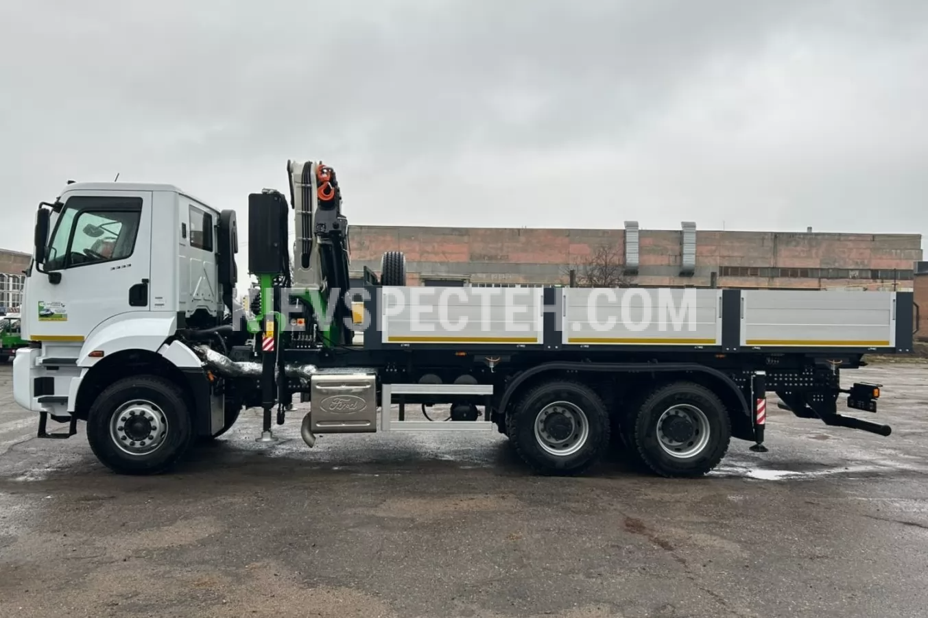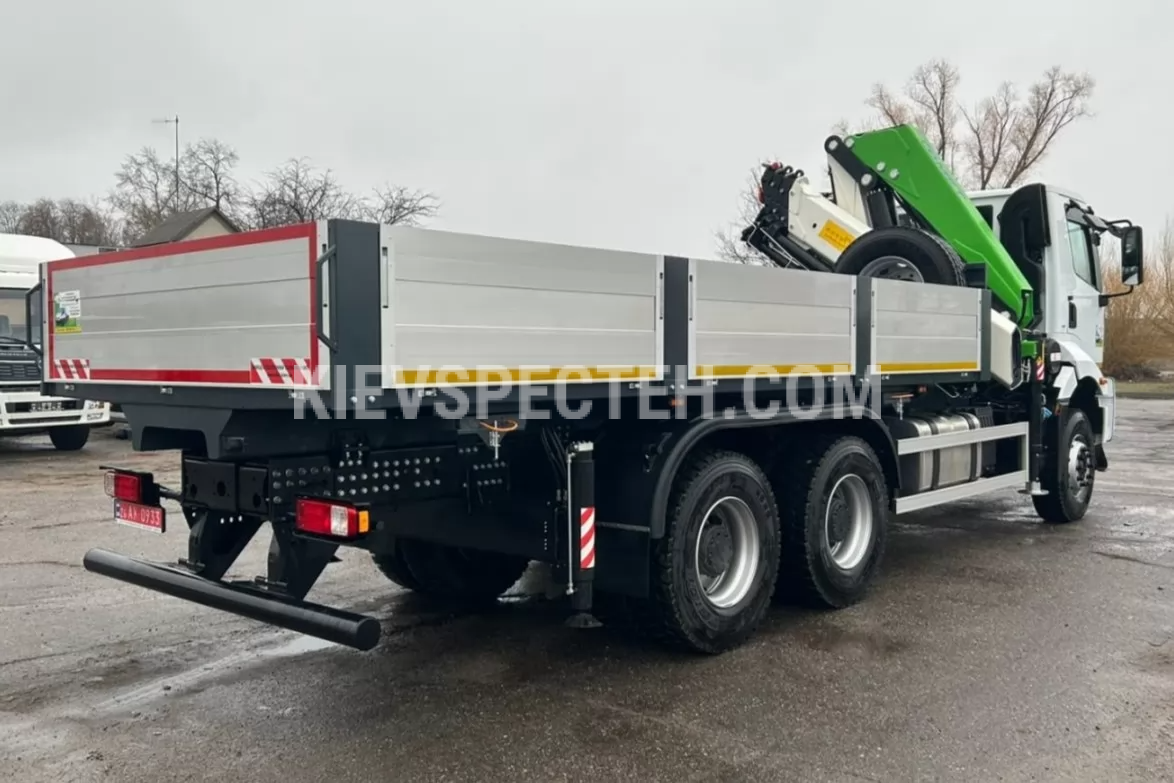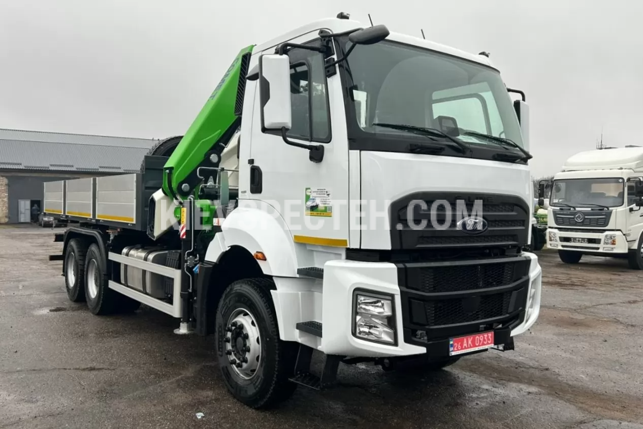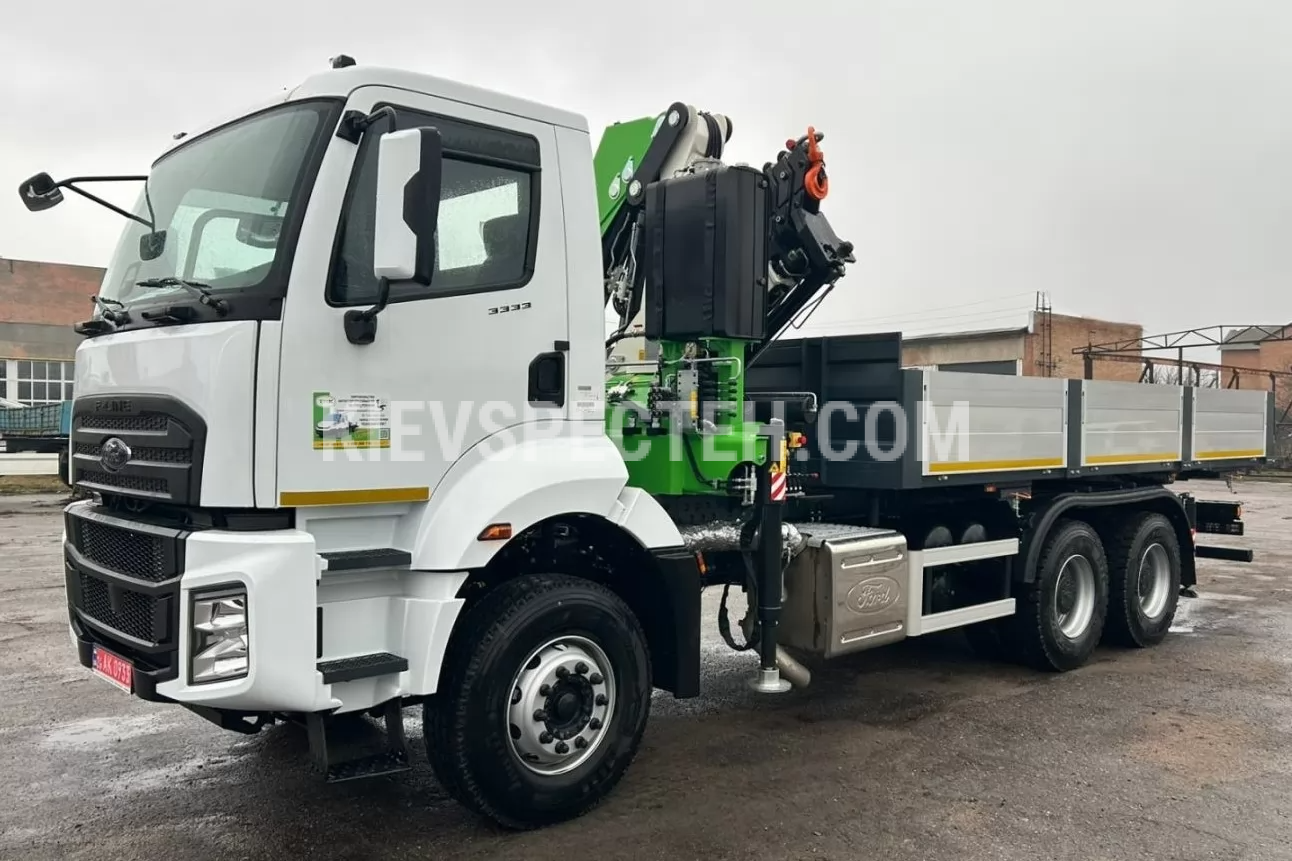 Бортовый автомобиль FORD Trucks 3333 DC с крано-манипуляторной установкой COMET XC 3500 A3 представляет собой универсальное решение для выполнения погрузочно-разгрузочных работ в строительстве, коммунальном секторе и логистике, сочетая функциональность классической бортовой платформы с возможностями автономной. Конструкция на базе трехосного шасси с колесной формулой 6×4 обеспечивает высокую устойчивость и эффективную работу в условиях повышенных нагрузок, а полная масса автомобиля до 34 т в сочетании с грузоподъемностью шасси 16500 кг позволяет уверенно работать с тяжелыми грузами.