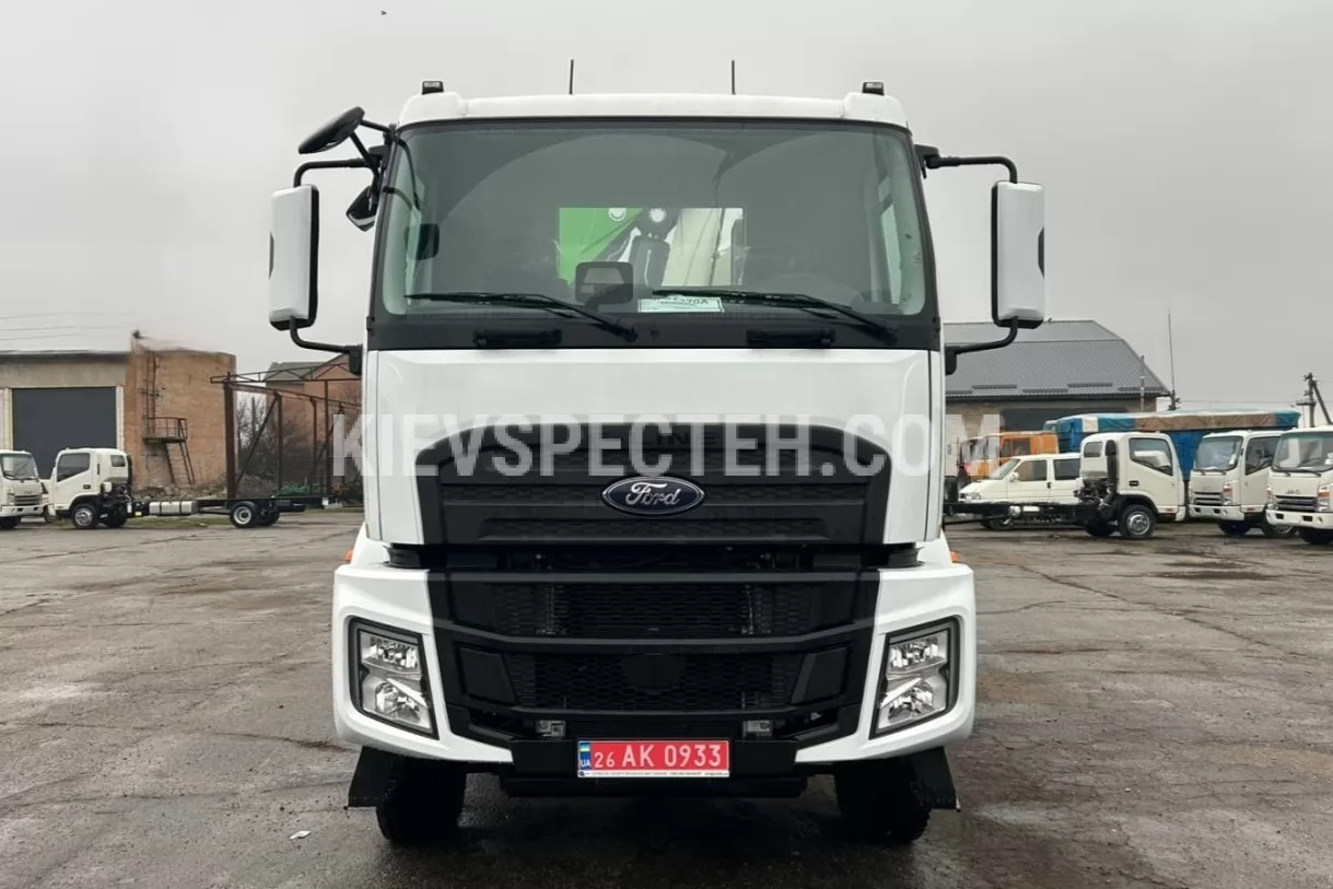 Шасси FORD Trucks 3333 DC оснащено дизельным двигателем Ford Ecotorq рабочим объемом 9,0 л, который развивает мощность 330 л.с. и крутящий момент 1300 Нм в диапазоне 1200–1700 об/мин, что обеспечивает стабильную тягу даже при полной загрузке и работе с краном. В паре с механической коробкой передач EATON ESO14409 (9+1) и ведущими мостами с передаточным числом 4,87 силовой агрегат гарантирует эффективную передачу крутящего момента и адаптацию к сложным дорожным условиям. Подвеска выполнена в виде параболических рессор спереди и балансирной системы сзади, что повышает устойчивость и равномерность распределения нагрузки между осями.