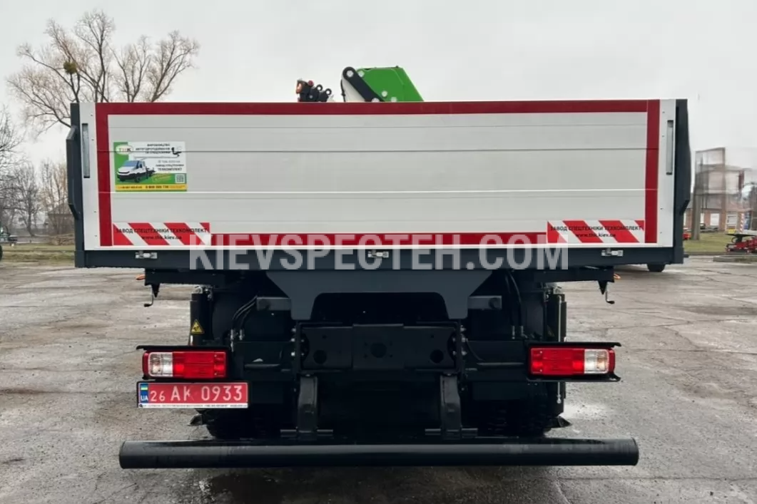 Бортовая платформа длиной 6000 мм, шириной 2550 мм и высотой бортов 600 мм изготовлена из стали с рифленым полом, что обеспечивает надежность и износостойкость при интенсивной эксплуатации. Откидные борта с удобными замковыми механизмами реализуют трехстороннюю разгрузку, что значительно расширяет возможности использования автомобиля в ограниченных условиях строительных площадок или городской инфраструктуры.