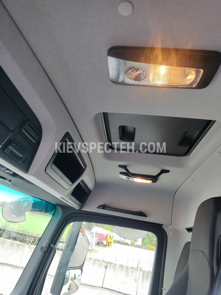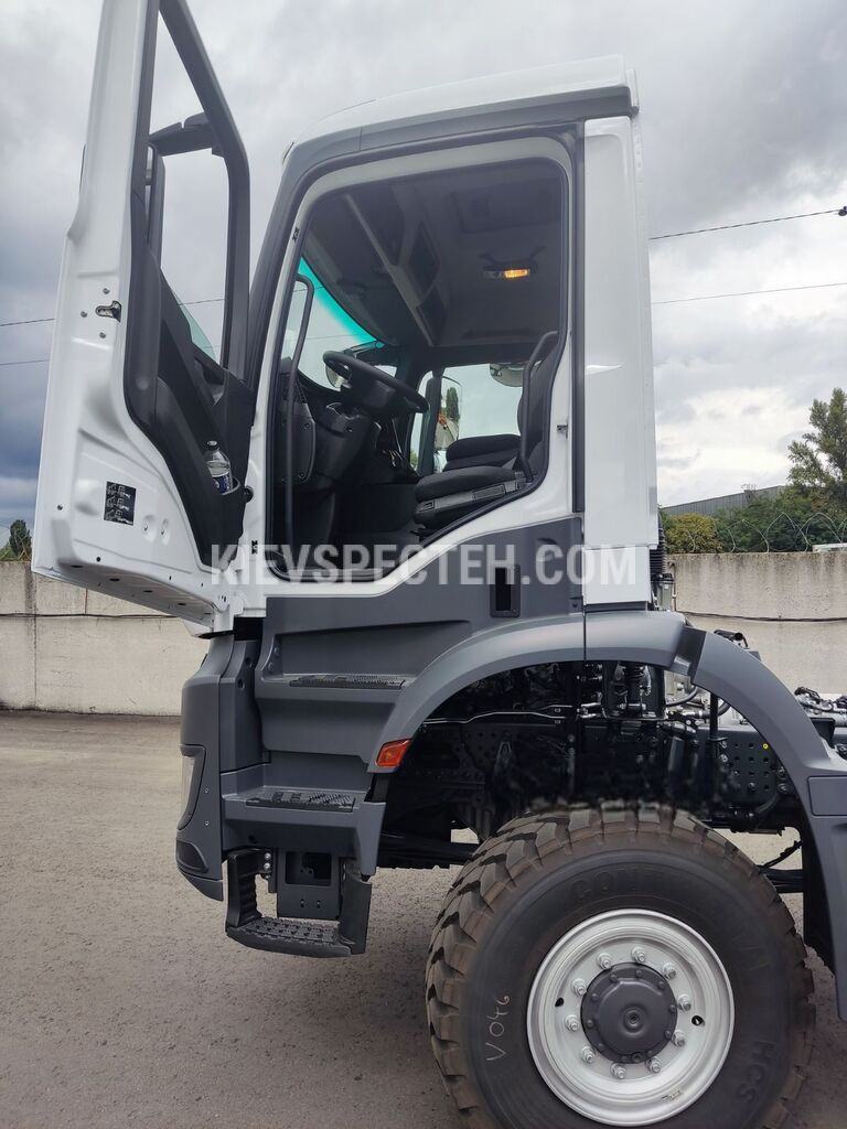 AutoHold, ABD, EBD, EBS, AEBS, а также ретардер и энергоаккумуляторы, повышающие эффективность торможения и безопасность движения. Топливная система включает алюминиевый топливный бак объемом 290 л, систему подогрева топлива и резервуар AdBlue. Колесная оснастка — односкатные шины 365/85R20 Continental спереди и сзади, рассчитанные на работу в тяжелых дорожных условиях. Кабина — типа S, шириной 2,3 м, с туннелем 320 мм, компоновка 1+2, цвет — арктический белый. Оснащение ориентировано на профессиональную эксплуатацию и комфорт водителя.