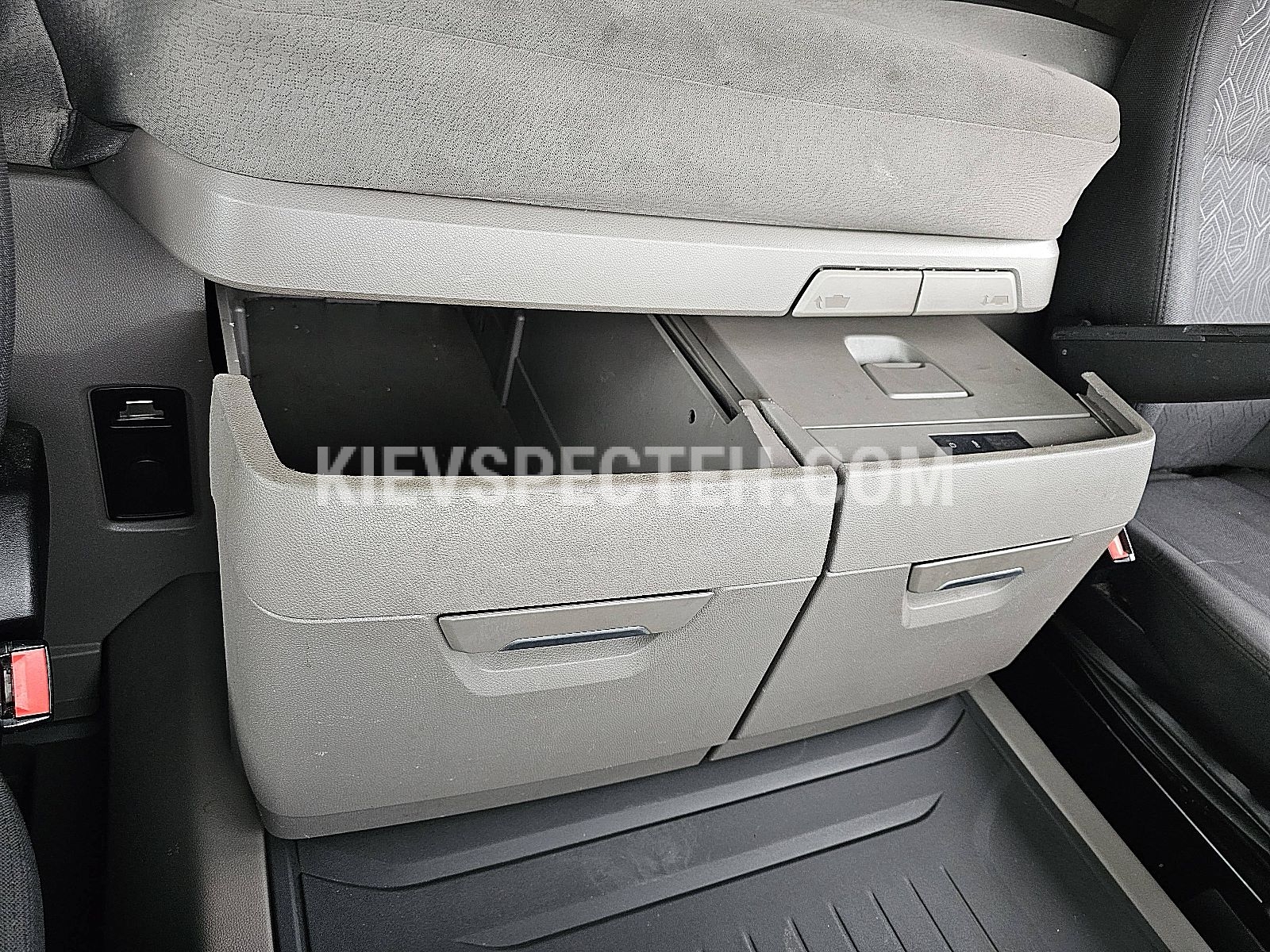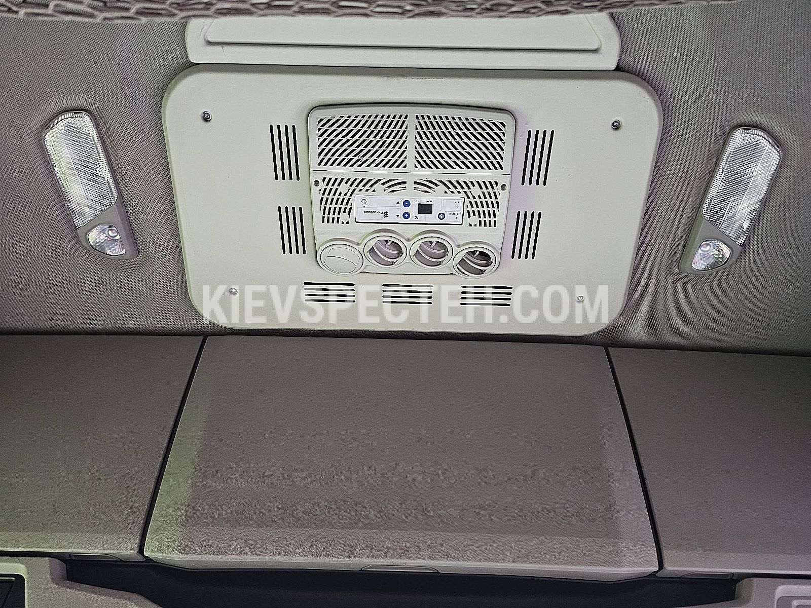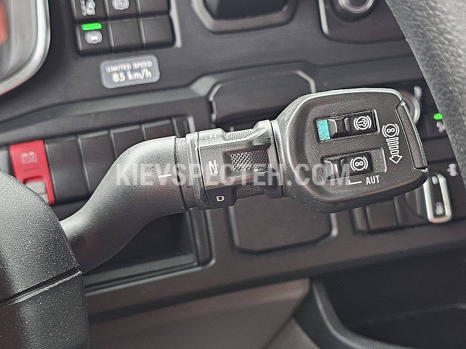 Кабіна — спальна, з компонуванням сидінь 1+1, оббивка сидінь — тканина, регулювання — ручне. Оснащення включає клімат-контроль, кондиціонер, автономний опалювач, круїз-контроль, цифровий тахограф, електросклопідйомники, електрорегулювання та підігрів дзеркал, центральний замок, мультимедійну систему з Bluetooth і CarPlay, галогенне освітлення та систему допомоги утримання в смузі руху. Колір кабіни — білий.