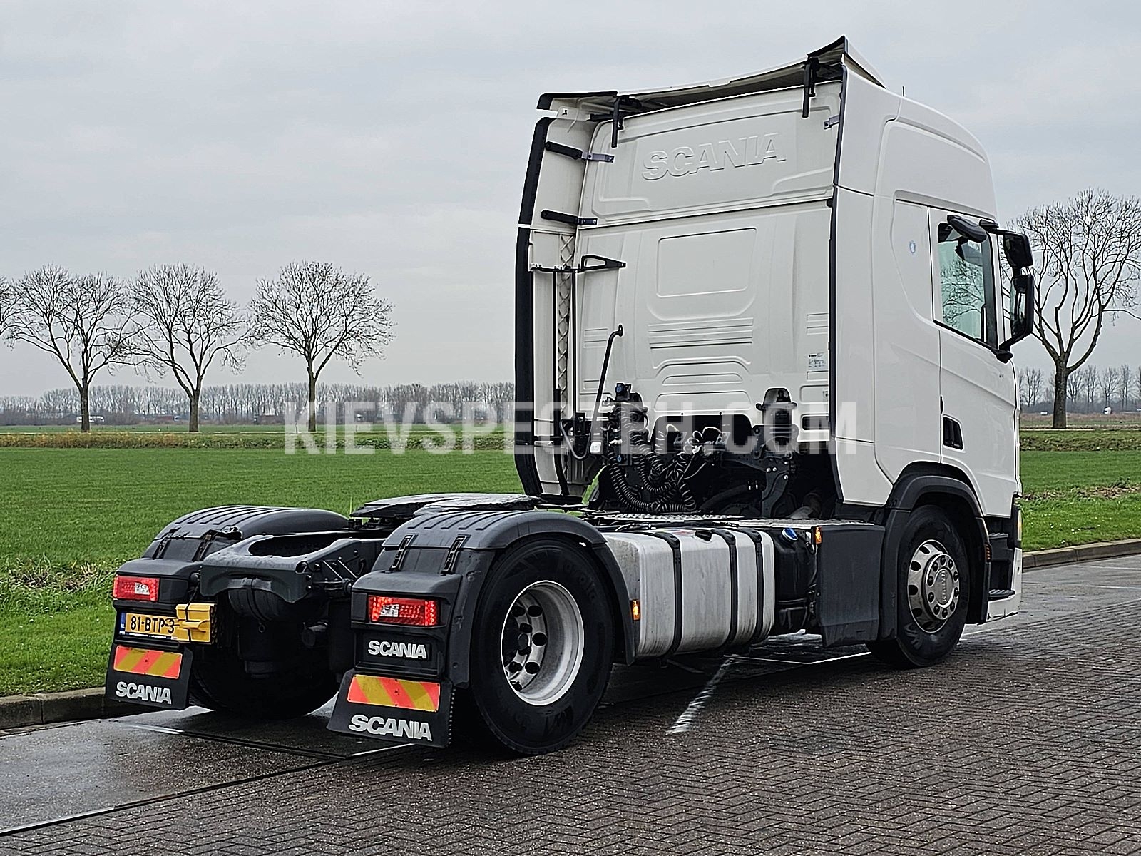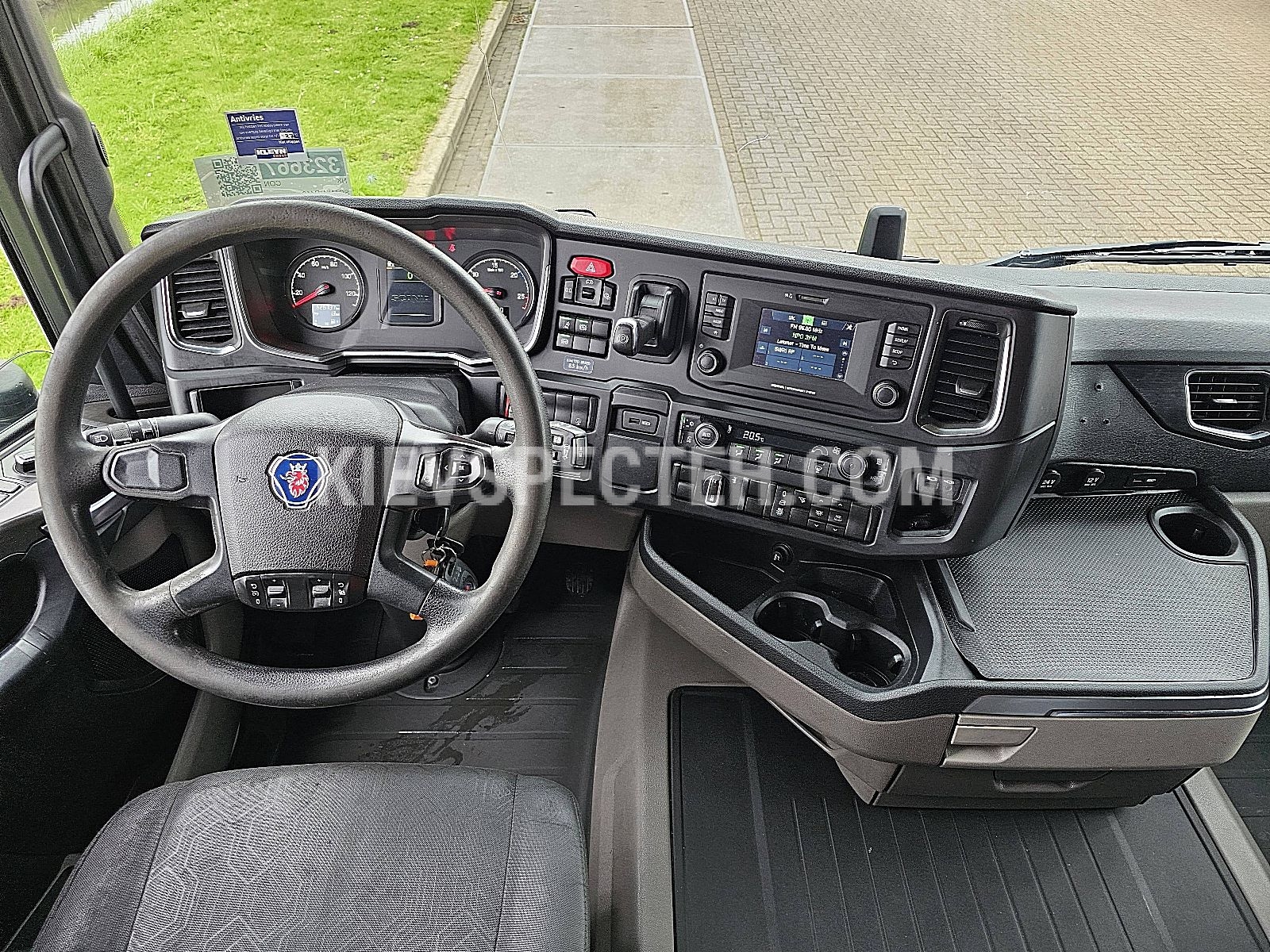 Силовий агрегат розвиває потужність 302 кВт (405 к.с.), працює на дизельному паливі та відповідає екологічному стандарту Euro 6. Двигун агрегатується з автоматизованою коробкою передач Scania Opti-Cruise з 12 передачами, що оптимізує витрату пального та знижує навантаження на водія. Автомобіль оснащений ретардером Scania, який виконує функцію додаткової гальмівної системи.